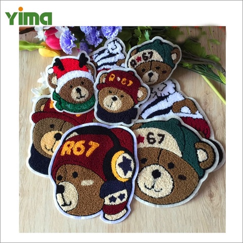 رقعة قطيفة للأطفال ملابس أنيقة على شكل دب منشفة تطريز شينيل رقع زغب مزينة