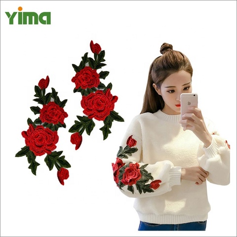 女の子のための特注カラフルヒートプレスステッカーロゴ生地服花ピンク刺繍アイアンオンシェニールパッチ
