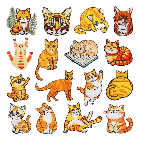 Cute Orange Cat Animal Embroidery Iron-On Twill Patches for Hat Featuring Felt Fabric Style