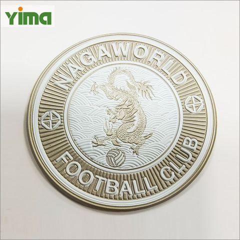 Aangepaste Hoge Frequentie Hete Persen Patch Goud Metallic Plating Gouden Zilverachtig 3d Reliëf Warmteoverdracht Tpu Logo Badge